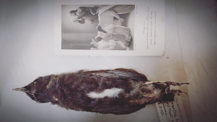 漸く、鳥の仮剥製を手に入れた。遠いフランスからやってきたクロサバキヒタキ(Oenanthe leucura) ツグミの一種で生息地は主にアフリカとスペイン。1930~40年製。