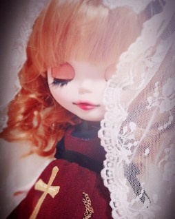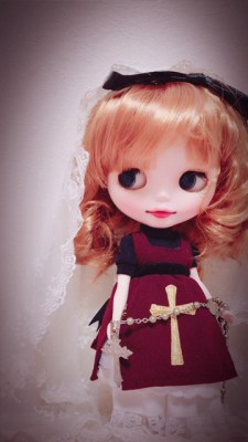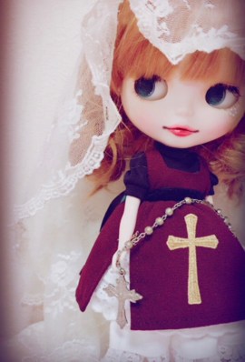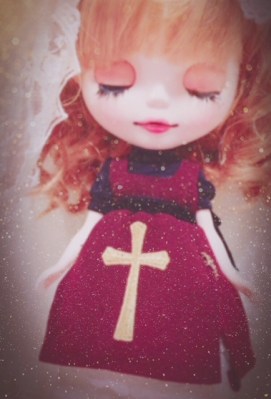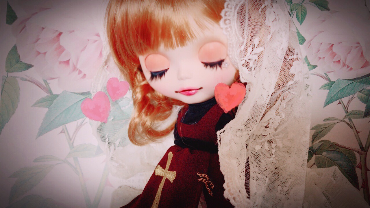 好きなお祈りの言葉と私のミサっ子ブライス。背景は