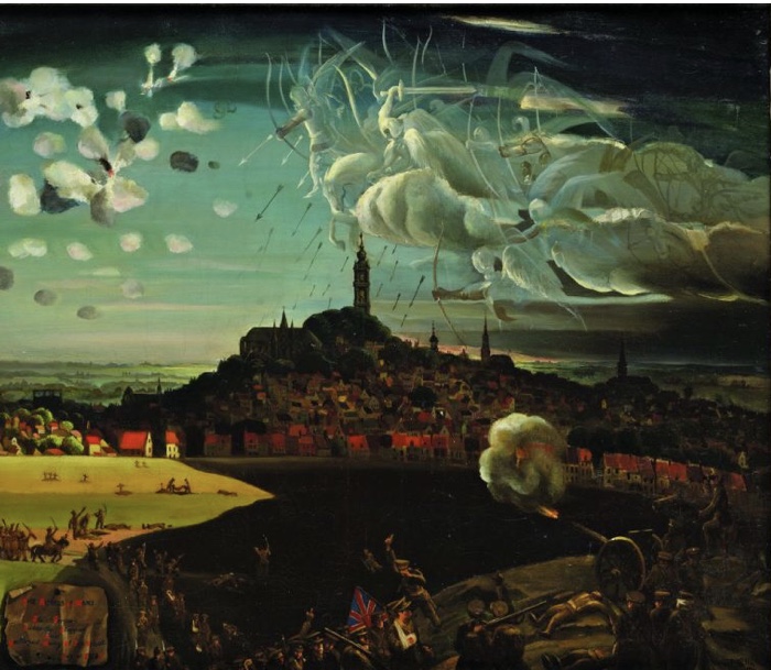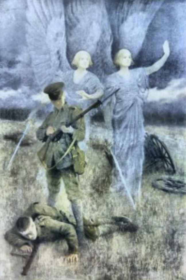 ドイツ軍に追い詰められたイギリス兵達が、聖ジョージにお祈りをすると灰色の人影が長い列を作り、ドイツ人達を弓矢で打っていくのである。人々は天使の軍、聖ジョージの助けだと確信した。これは、アーサー・マッケンの「弓兵」の小説だが、発表された当時は、実話だと勘違いされたのだとか。(モンスの天使事件)