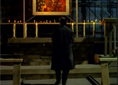 鑑賞者として人の運命を見るということは結局のところ自分の運命と照らすことになる。まるで他人の人生を見て、自分用に翻訳するみたいだ。この話の悲劇は誰しもが翻訳しやすい「神」であり、共感出来る「神」であろうと思う。けれども受け入れがたい話である。実在者であった息子の存在が消え、魂という曖昧な存在になってしまった時に、クシシュトフにとって息子の非存在は神と同列になったと体感したのかもしれない。彼にとっては魂も神も同列の拒絶していた存在だったからだ。だから、建設途中の祭壇に飾られている聖母マリア画へと向かったのだろうと私は思う。そして彼は祭壇に手をかけて押し倒してしまう。