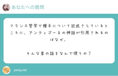 「アンティゴネーのような古い神話を何故哲学は使うの?例えばデリダの贈与のように」