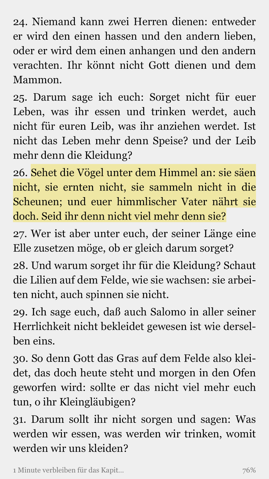 あなたがたの天の父は 鳥(彼等)を養ってくださる。